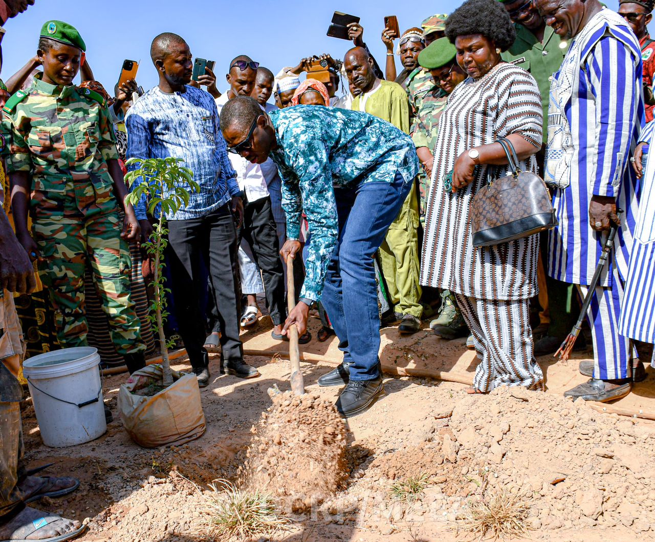 "Nous sommes sur la ceinture verte de Ouagadougou, qui est un site emblématique que nous tentons de restaurer à travers la mise en place de bosquets et d'autres plantations. Nous avons estimé qu'il était de bon ton de passer ici, de toucher du doigt, de donner des orientations pour que ce qui a été annoncé et qui a commencé soit une réussite. Parce que les bosquets à plantes médicinales vont permettre d'être un espace de conservation des espèces végétales en voie de disparition. C'est aussi un espace de création et d'apprentissage pour les acteurs et surtout de renforcement des capacités des acteurs. Ce ne sont pas simplement des arbres, ce sont des thérapies, des espoirs pour nous-mêmes et pour d'autres communautés. Et comme disait le camarade Président le 14 juin: planter un arbre, c'est donner une vie pour sauver des vies." a indiqué le Ministre Roger BARO.